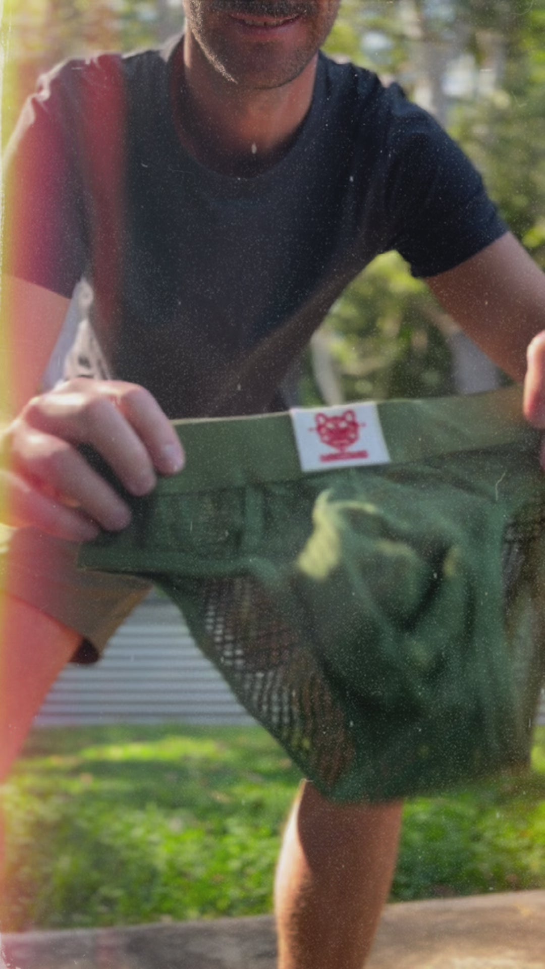 Brief in semi-through mesh. The pouch has a fly and gives you a perfect shape to your goodies. Silicone logo on the waist elastic.
